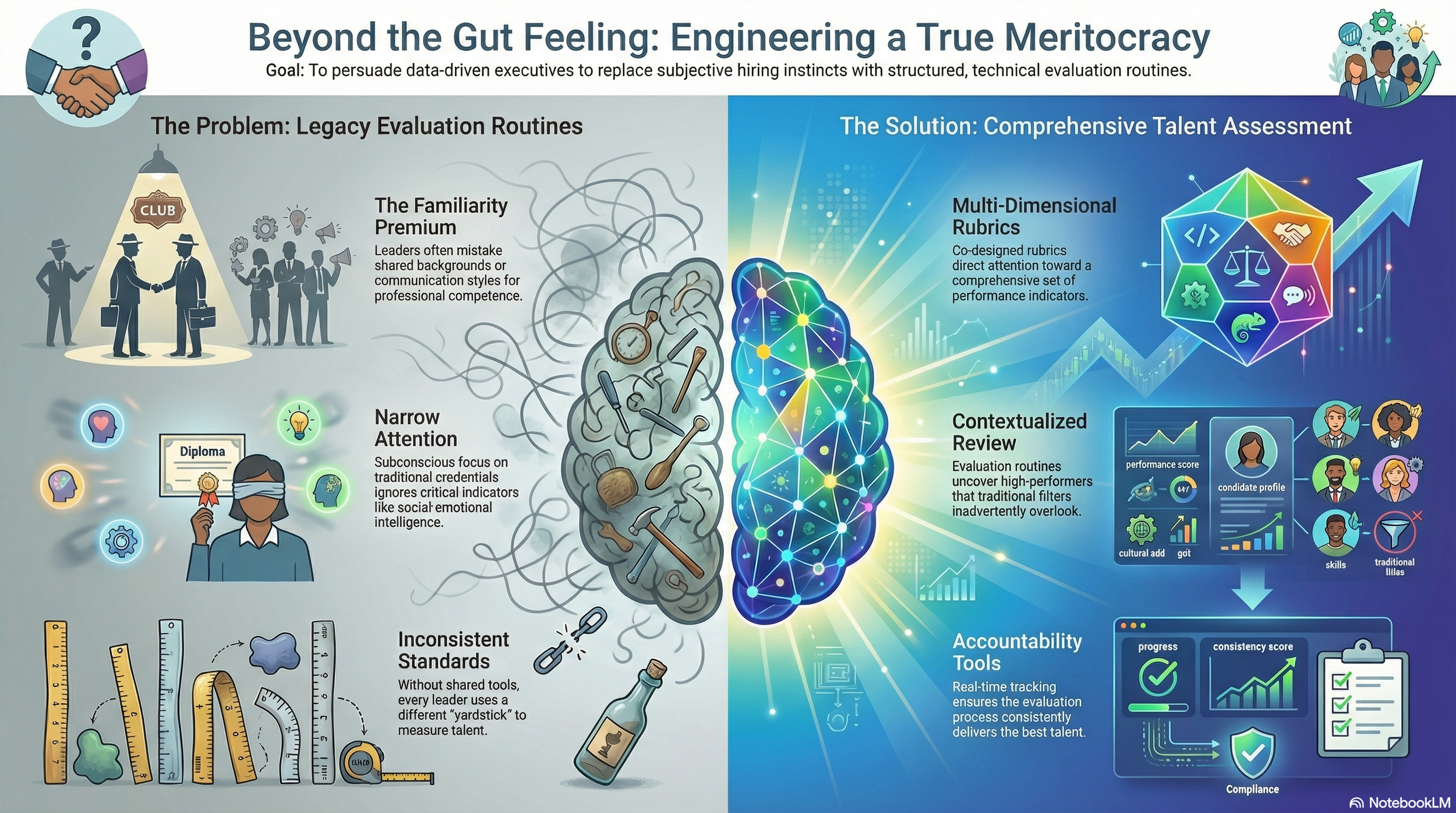Through my study of elite selection processes, I identified that the "Implementation Gap" in hiring isn't caused by a lack of diverse candidates—it’s caused by Legacy Evaluation Routines.